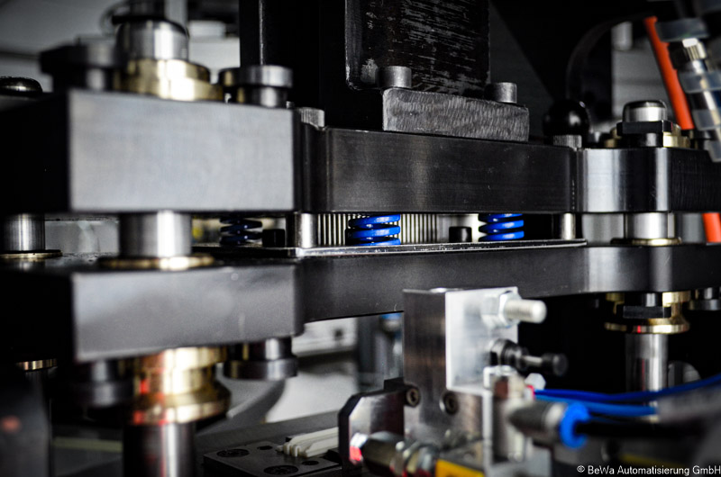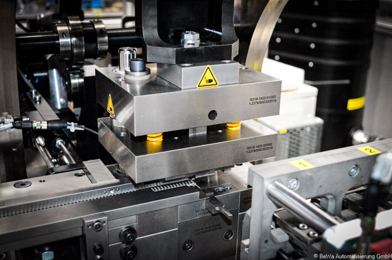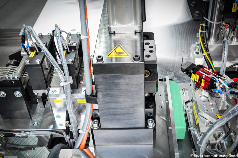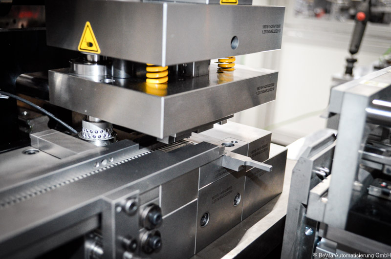Bei der Integration von Montageprozessen ist eine Zuführung von kleinen Produkten auf Endlosbändern erforderlich. Zu Vereinzelung dieser Produkte kommen individuelle Stanzwerkzeuge zum Einsatz. Hierbei wir das jeweilige Produkt vom Trägermaterial entfernt und dem Montageprozess zugeführt. Dieser Prozess ist bei der Bestückung von Kunststoffstecker mit sogenannten Terminals essenziell wichtig. Bei allen Stanzprozessen spielt ein gratfreies sowie flitterfreies Stanzen eine große Rolle.